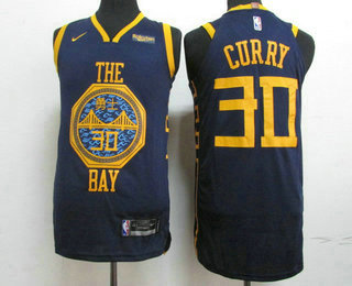 - Men's Golden State Warriors #30 Stephen Curry New Navy Blue 2019 City Edition NEW Rakuten Logo NBA Swingman Jersey