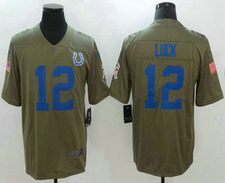 - Men's Indianapolis Colts #12 Andrew Luck Olive With Camo 2017 Salute To Service Stitched NFL Nike Limited Jersey
